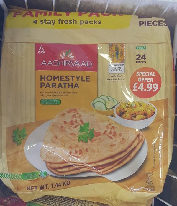 Previous Product Aashirvaad homestyle paratha 1.44kg £4.99 Out of stock SKU: 1673 Category: Special Offers Related products Quick View Quick View Special OffersAashrvaad matar pudina paratha 400g £1.99 Add to basket Quick View Quick View Frozen Bread & Ready Made, Special OffersAASHIRWAD FZ ALOO PARATHA 300g £1.99 Add to basket Quick View Quick View Special Offers, Pasta, Noodles, VermicelliMaggi Masala Noodles 70g 3 for £1 £1.00 Add to basket Quick View Quick View Special Offers, Rice,Flour & RavaHEERA CHAKKI ATTA 10KG £9.99 Add to basket Quick View Quick View Frozen Bread & Ready Made, Special OffersAASHIRWAD FZ MALABAR PARANTHA 300g £1.99 Add to basket